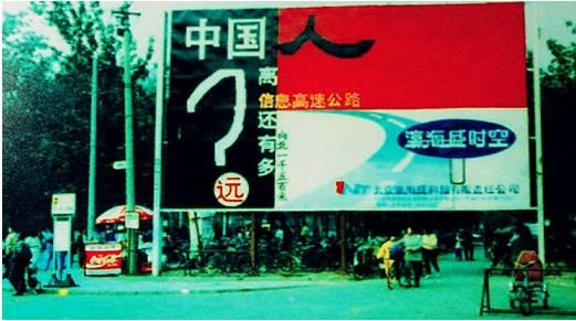 1996年中关村立起了一块巨大的广告牌,写道:“中国人离信息高速公路有多远?”