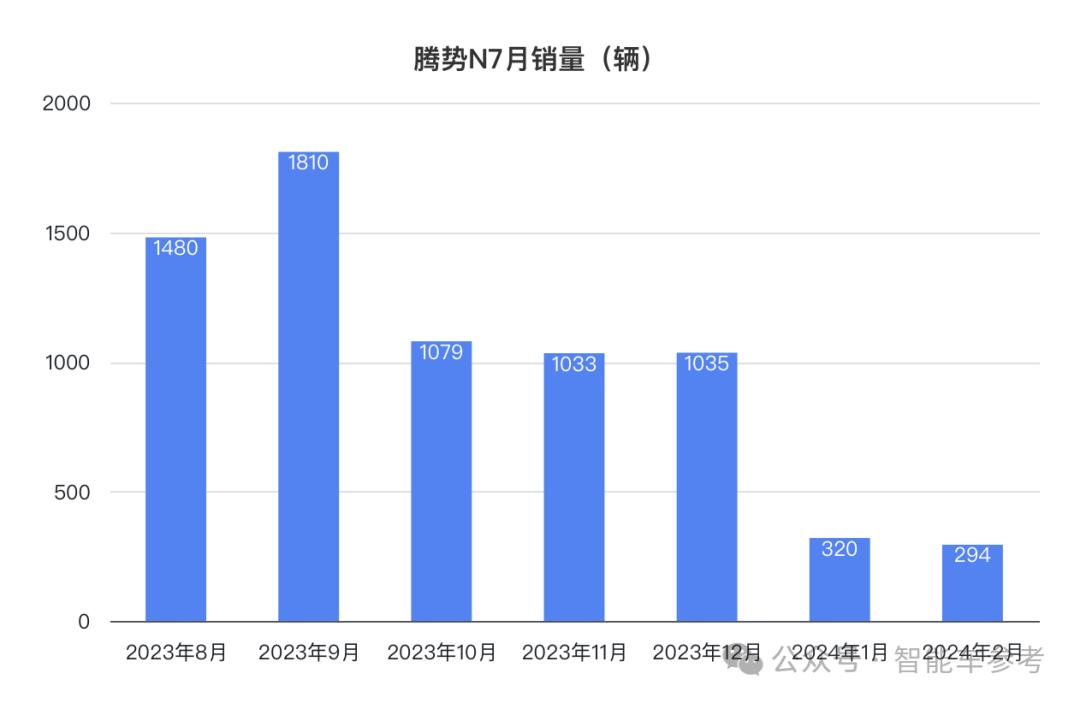 还有混动版本的腾势N8,和腾势N7一起难兄难弟,除了第一个月销量破千外,其余月销只有几百甚至几十辆。