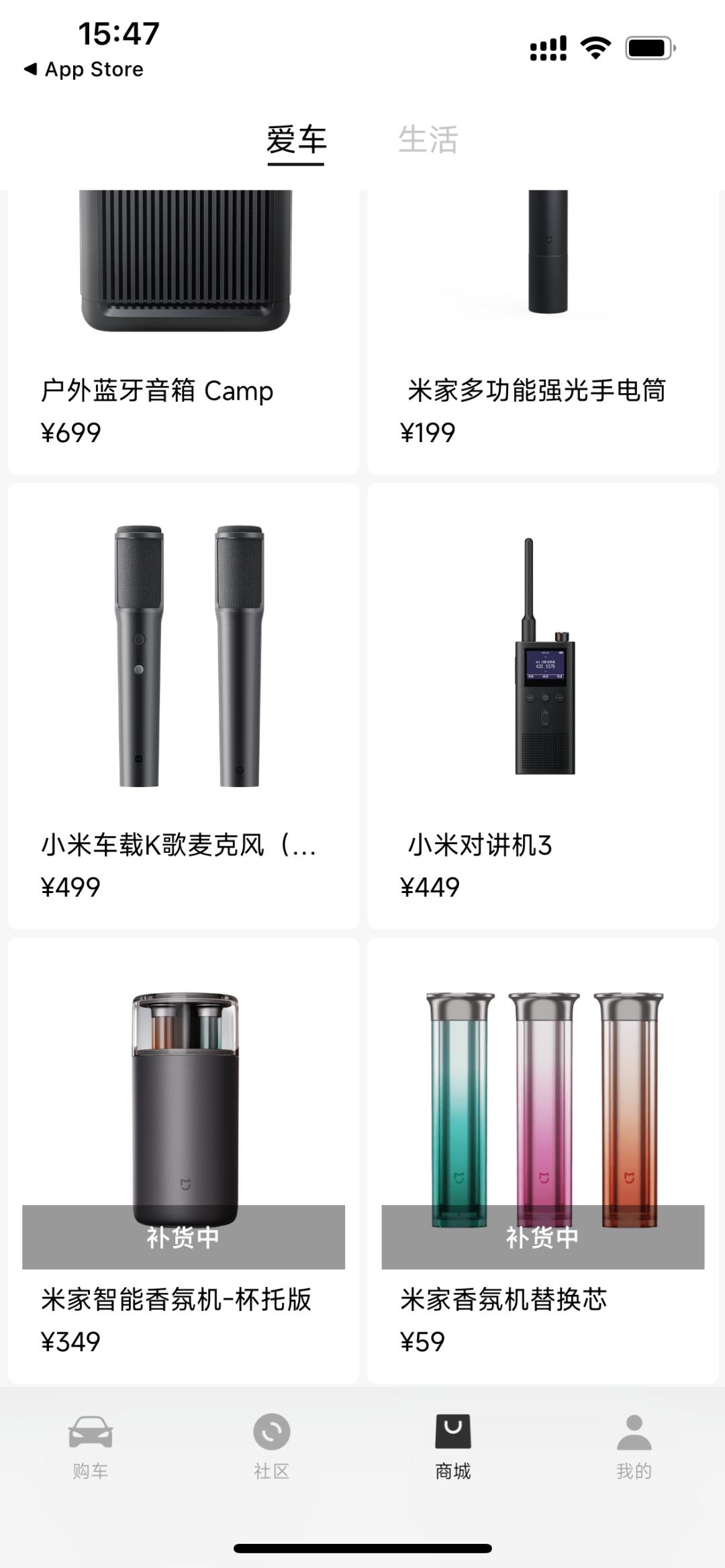 反过来,当用户购买小米汽车,互联生态又在拉动汽车相关的周边设备消费。新车开售后,在雷军的倾情带货下,小米汽车APP上部分设备已经售罄——在发布会后的采访中, 雷军曾将小米汽车比作一个支持全屋智能的房间,为新房添点智能家居,再合理不过。