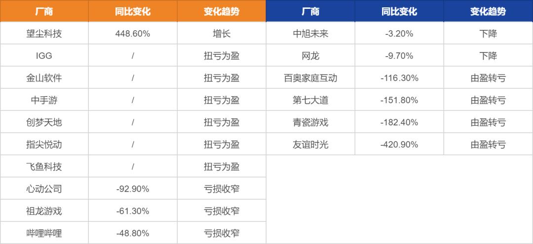 虽然净利润前五的厂商变化不大,但他们之间的相对位次还是发生了改变。网龙和金山软件冲到了第一队列,IGG落之第二队列并与前者们拉开了较大差距。