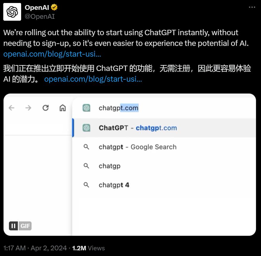 OpenAI 公布的又一 “ 重磅消息 ” :ChatGPT 现在不用登录就能直接用了。