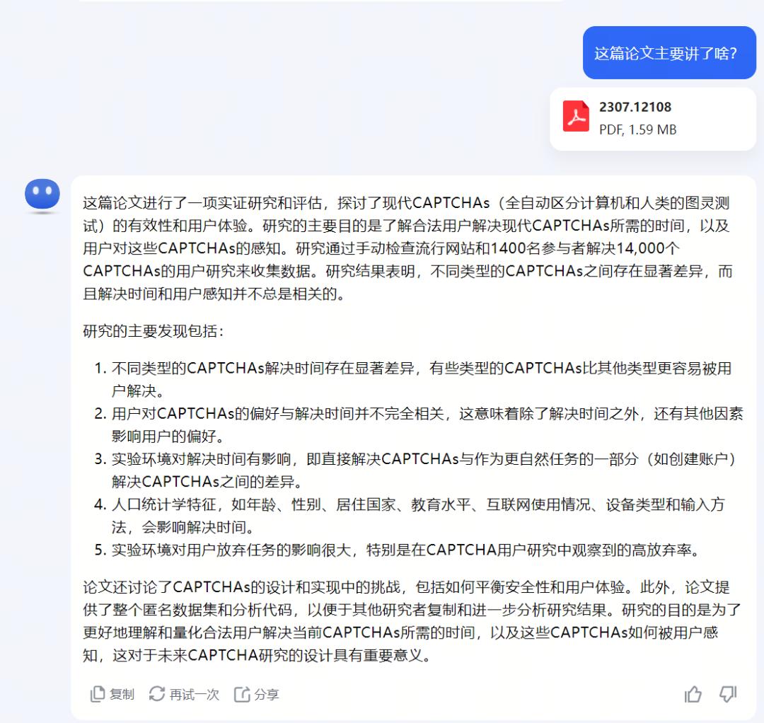 比如丢篇PDF 版本的英文论文给文心一言和 KimiChat ,它们不到一分钟它就能总结出答案,讲的也没啥问题。