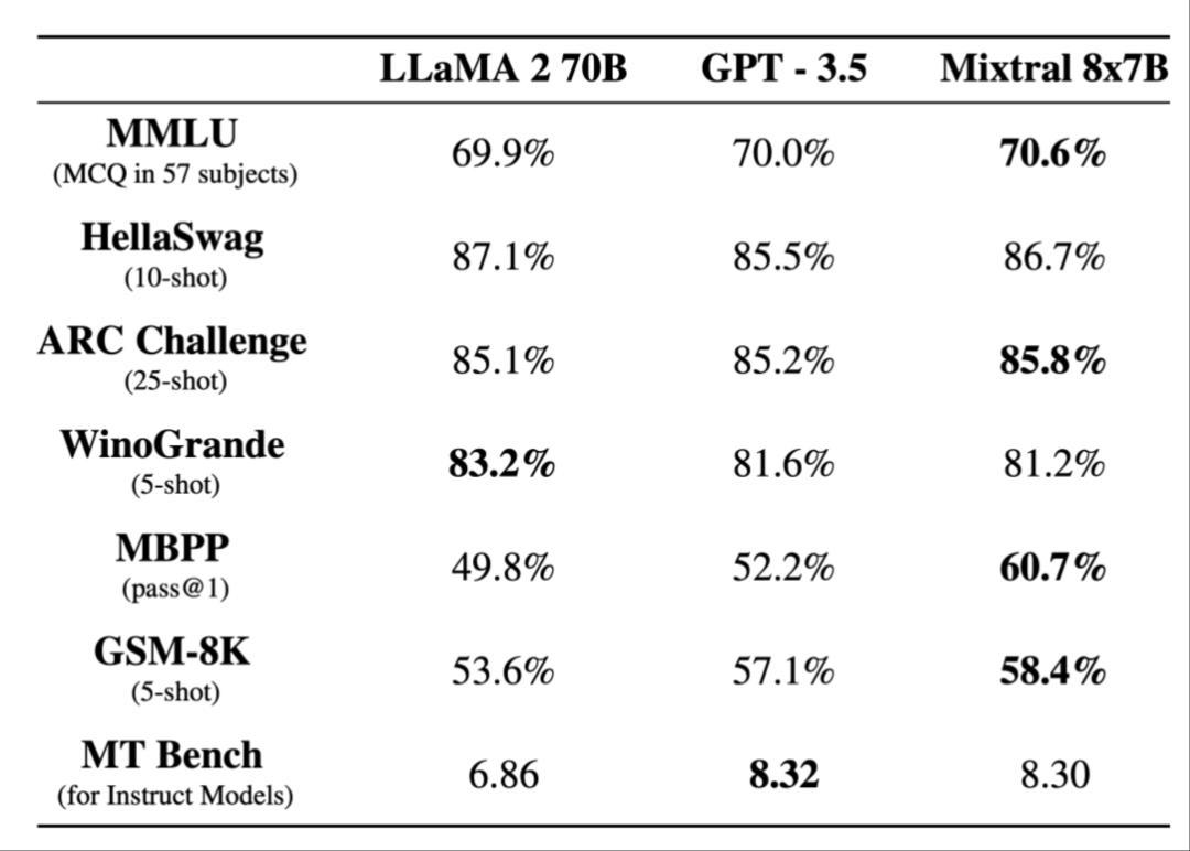 甚至连开源模型的能力,都个顶个得赛 GPT-3.5 ,就比如 Meta 的 LLaMA 2 ,用 70B 的模型就已经能媲美 GPT-3.5 了,还有欧洲正当红的 Mistral AI ,推出的 Mixtral 8X7B 也都是 GPT-3.5 的水准。
