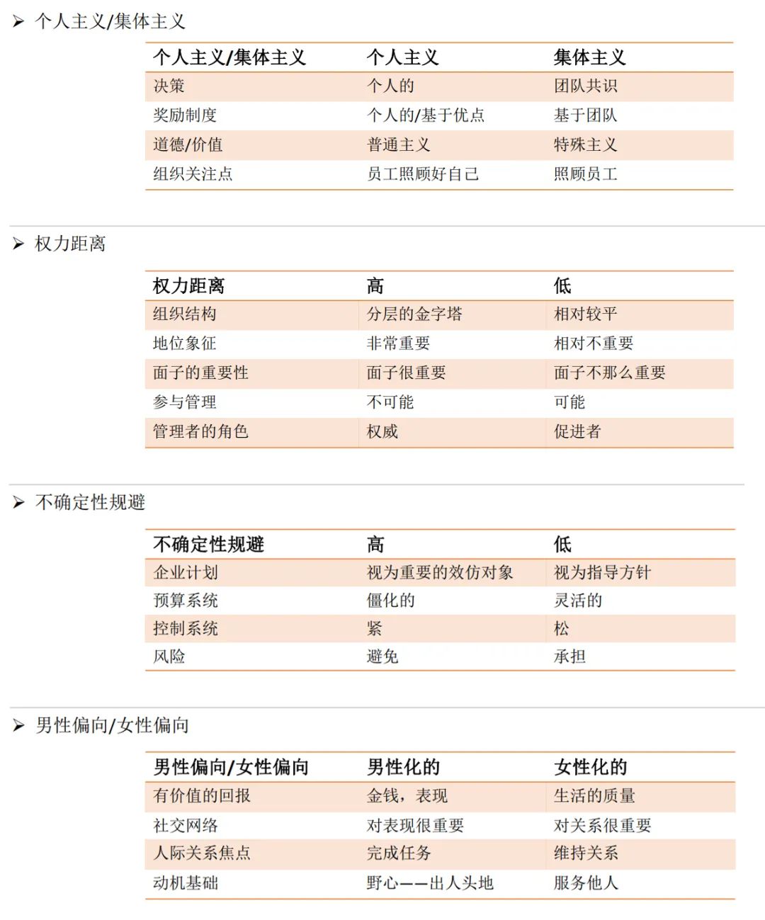 文化维度每天都在影响着企业的运作,包括奖励制度、组织架构、面子问题等。