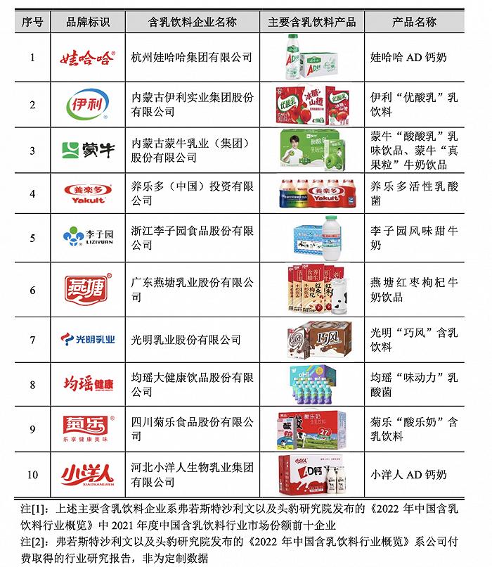全国十大含乳饮料榜单。(图片来源:菊乐食品)