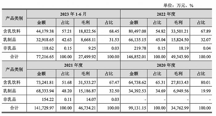 菊乐食品含乳饮料占比变化。(图片来源:菊乐食品招股书)