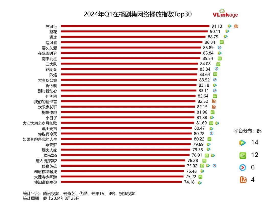接下来本文犀牛君会结合近日Vlinkage、灯塔专业版以及云合数据发布的相关报告或榜单数据,对2024年Q1剧集市场进行更深入的复盘。