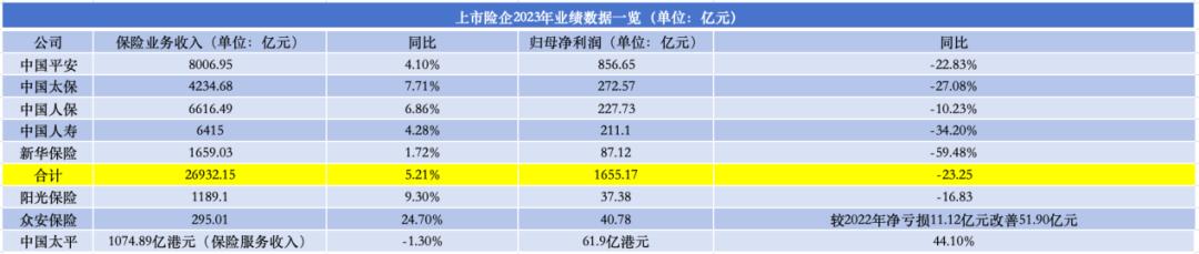 (数据来源:上市险企2023年业绩报告)