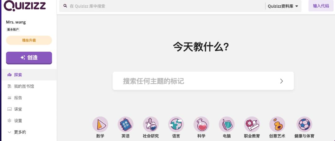 目前,Quizizz的测试数据库中涵盖了数学、英语、社会研究、语言、科学、电脑、职业教育、创意艺术、健康与体育等主题。