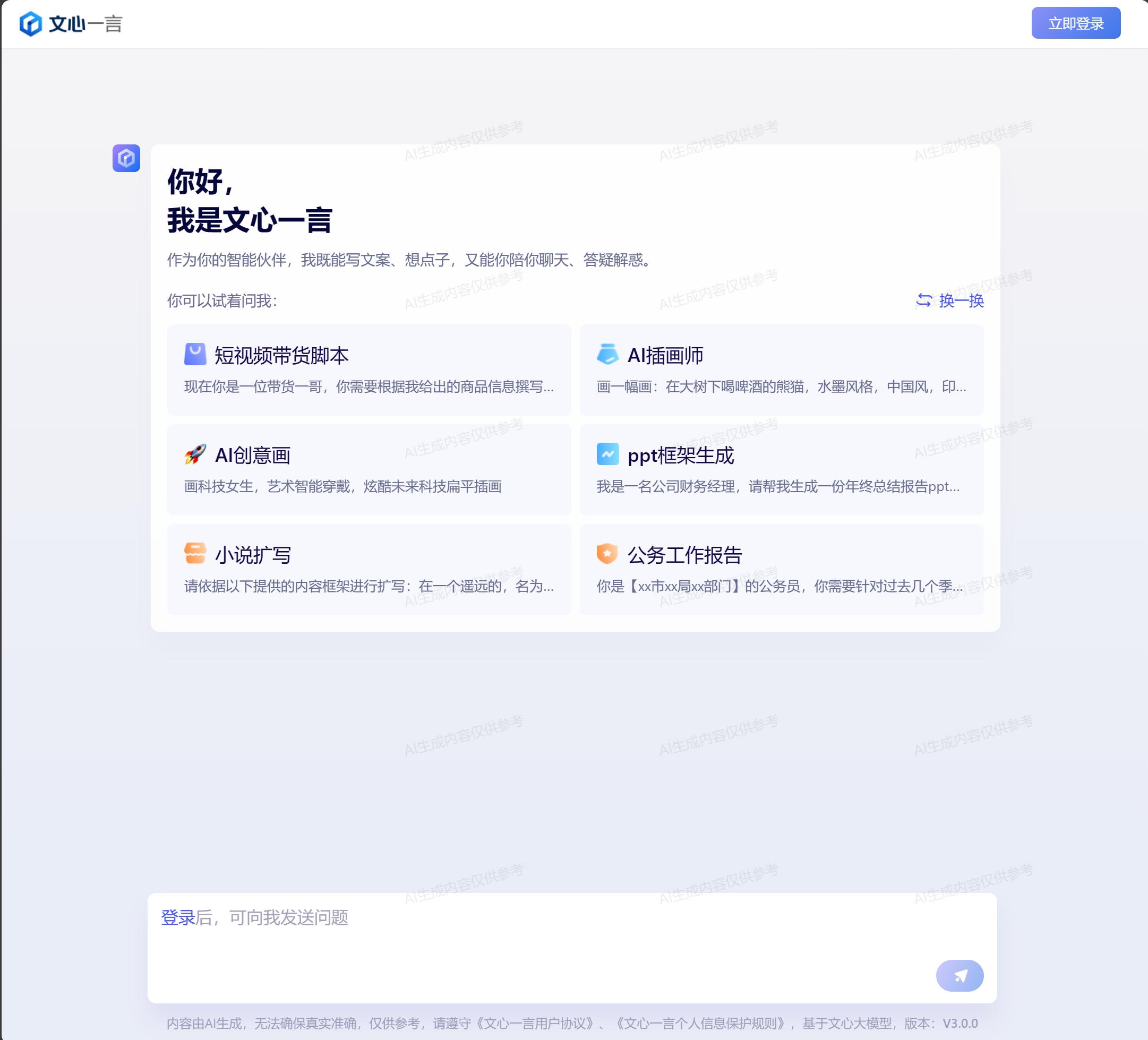 理论上来说,文心一言是需要支持免登录的,因为要成为基础信息获取平台,降低使用门槛是非常必要的。就像搜索引擎,虽然平台们希望用户登录,但实际上全都允许用户在不登录时正常使用。