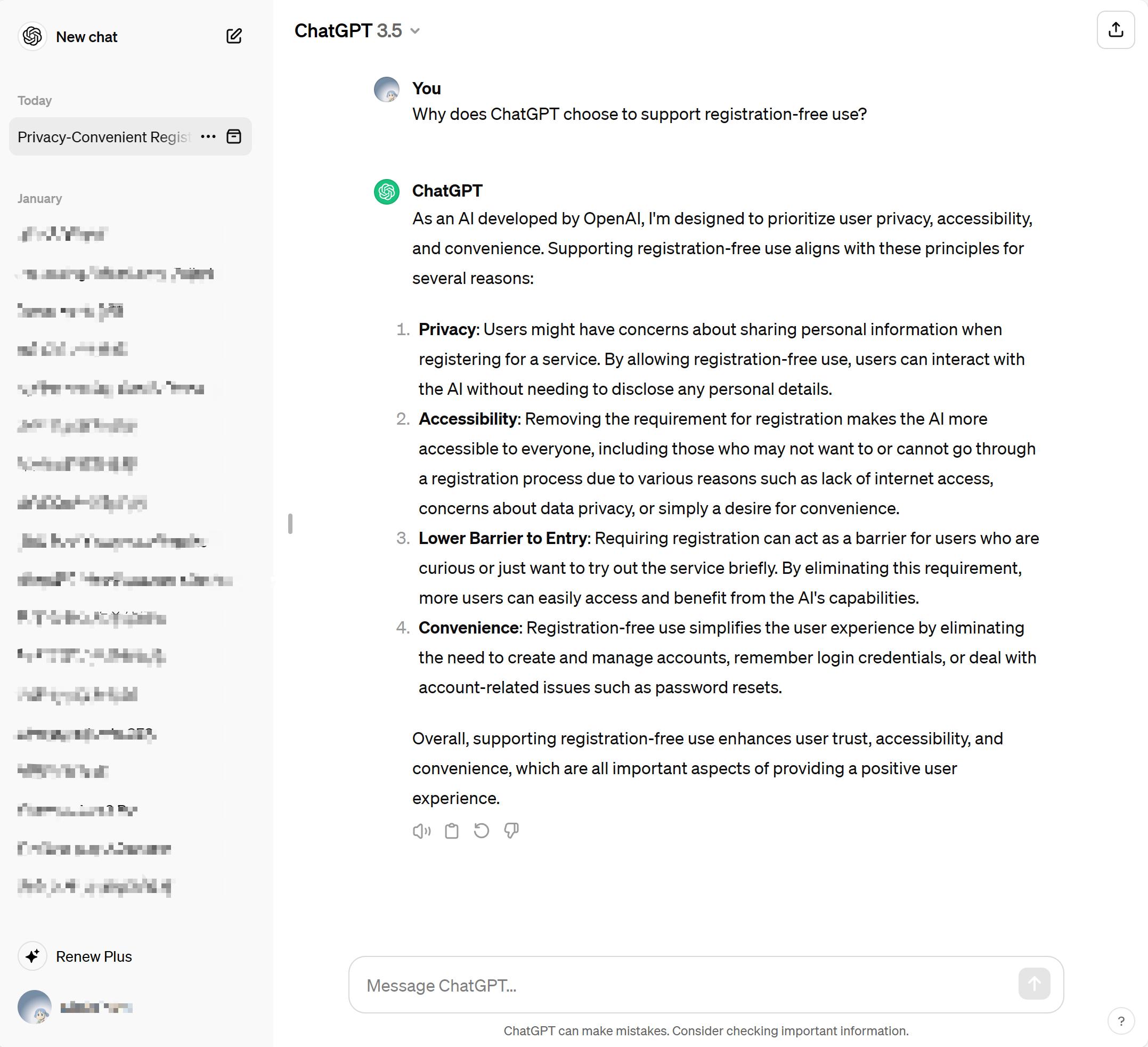 OpenAI 的说法不难理解,免登录使用直接让用户跳过了「注册账户」这一步,自然可以大幅降低用户的尝试门槛,吸引更多用户。