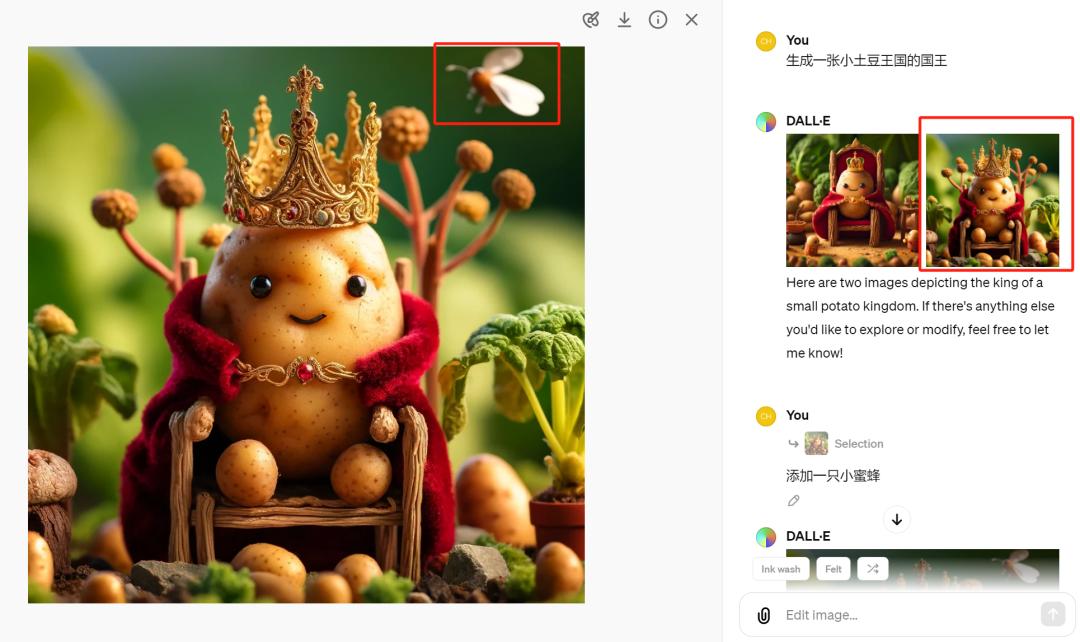 你甚至可以做一些微小的改变,比如在土豆国王的右上角添加一只小蜜蜂:
