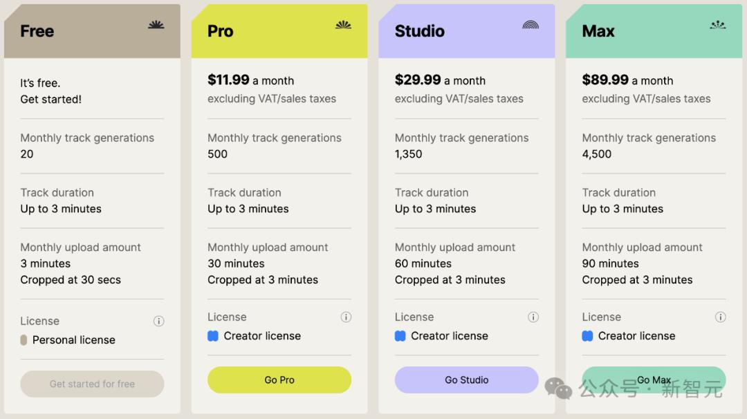 就是价格着实不便宜: Pro版11.99美元/月、Studio版29.99美元/月、顶配Max版则直接来到了89.99美元/月。