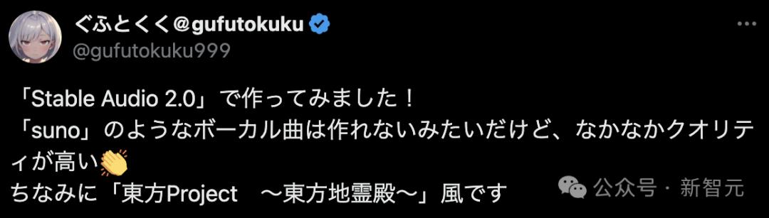 Shugo Nozaki在试用后点评道:Audio 2.0跟Suno不同,它似乎保留了简单的提示,并且把歌曲简化了。
