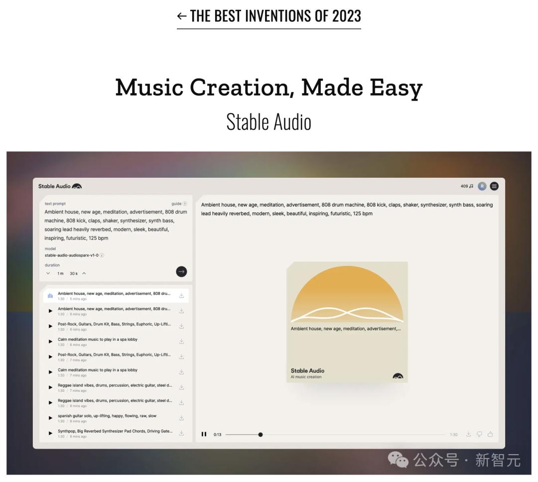 当时,Stable Audio 1.0就被《时代》杂志评为2023年的最佳发明之一。