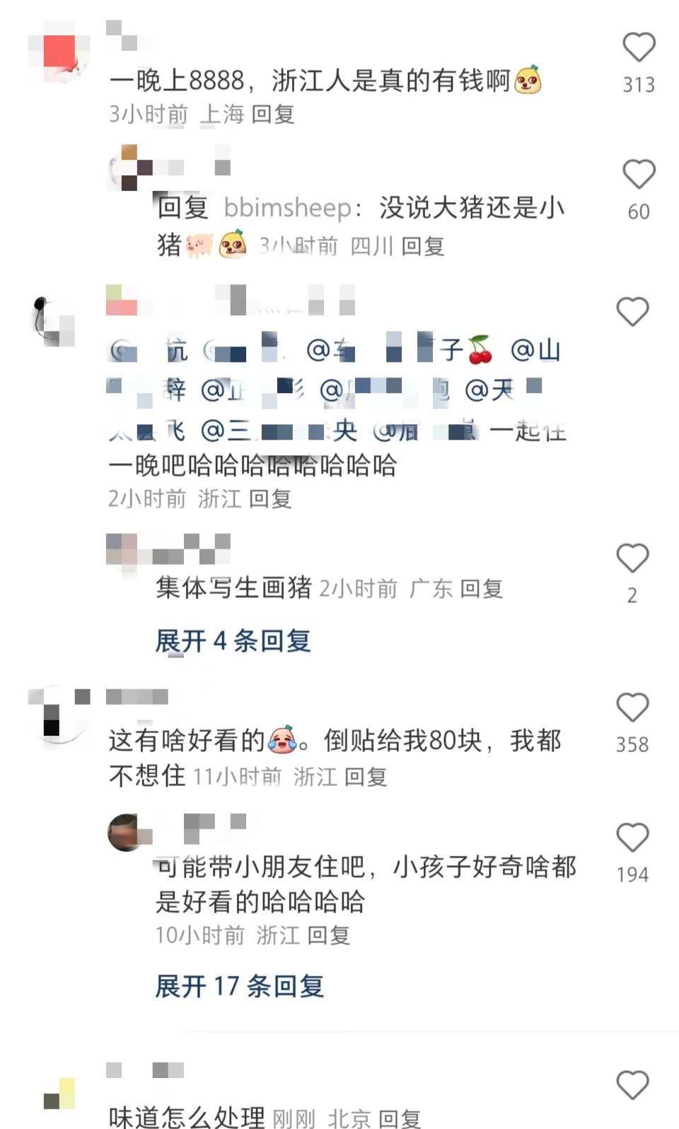 该动态引发网友讨论,有网友质疑是否有人花高价住猪景房,有网友表示酒店赠送的猪品种值这个价,也有极个别网友在评论区@好友相约前往。