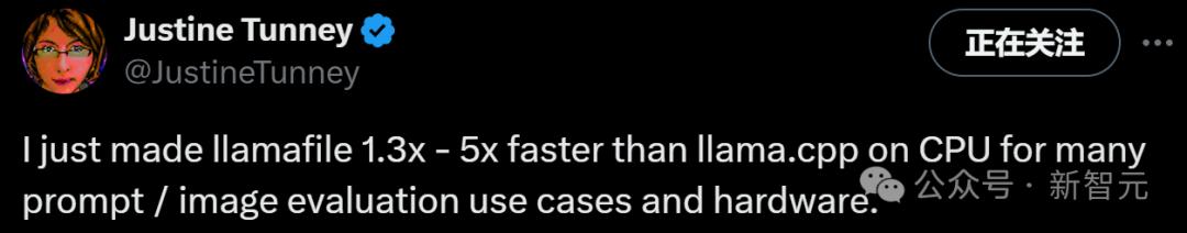 近日,天才程序员Justine Tunney发推表示自己更新了Llamafile的代码,