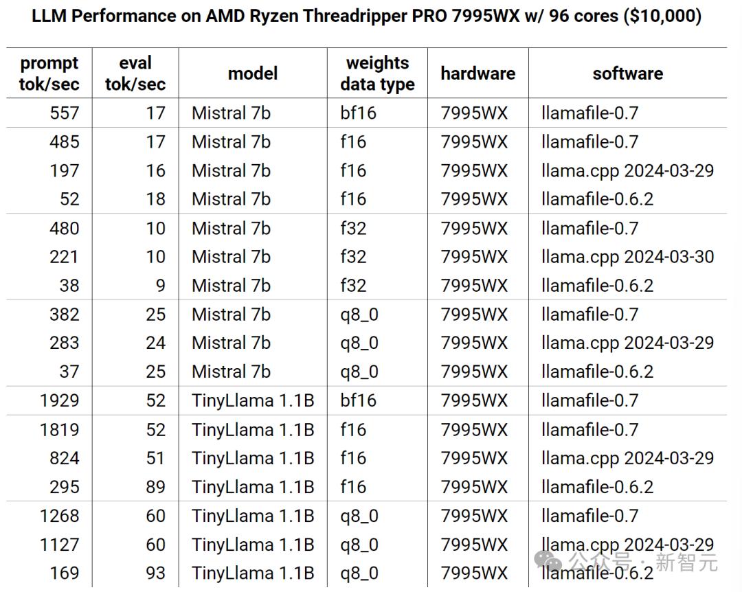 她重写了84个新的矩阵乘法内核,使得Llamafile可以更快地读取提示和图像。