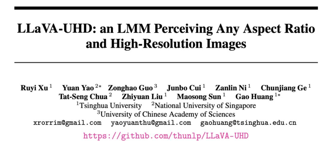 这个问题在清华大学、新加坡国立大学和中国科学院大学的一篇题为《LLaVA-UHD: an LMM Perceiving Any Aspect Ratio and High-Resolution Images》的论文中得到了解释。