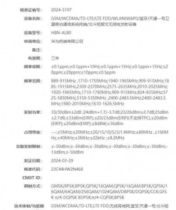 从工信部入网信息来看,“捅破天”的北斗卫星通信技术没有缺席。