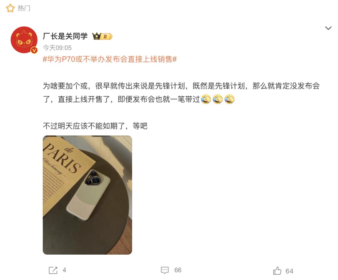 华为发布会取消,P70将直接开售,网友先疯了