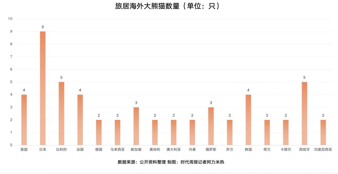 因为不断有新生的大熊猫和租约到期的情况,旅居在外国的大熊猫数量一直都在动态变化。据国家林业和草原局动植物司统计,截至2023年年底,旅居国外的大熊猫总数56只,旅外大熊猫健康状况总体良好。