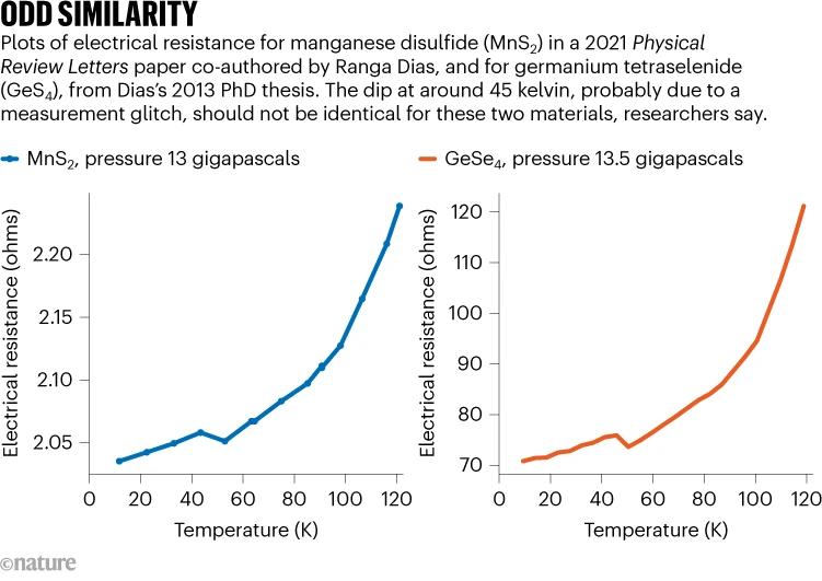 Ranga Dias论文中提取的两个不同电阻图之间的相似性。图片来源:《自然》