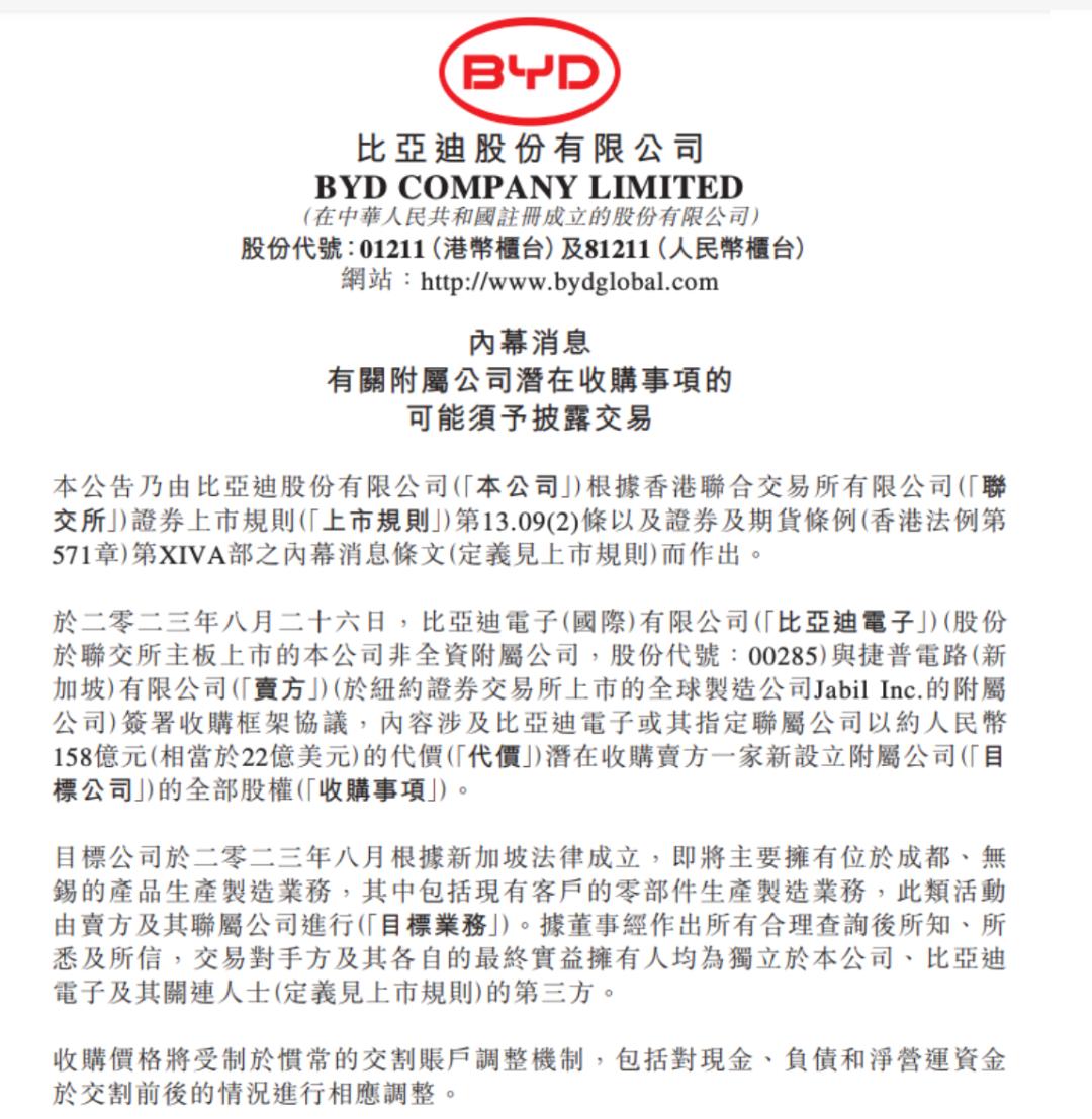 尤其是去年8月份时,比亚迪曾斥资22亿美元收购EMS代工厂捷普,捷普也是苹果的代工企业, iPhone、iPad、AirPods等相关苹果产品也曾是这家公司代工的,因此,比亚迪收购捷普,意思已经很明显了。
