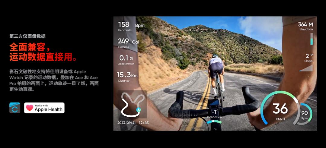 而国产这边,大疆 Action 4 有 GPS 蓝牙遥控器,而 Insta360 Ace Pro 也能通过连接佳明手表和 Apple Watch 来获取数据,主打一个该有的都有,没有的也想办法给你加上去。