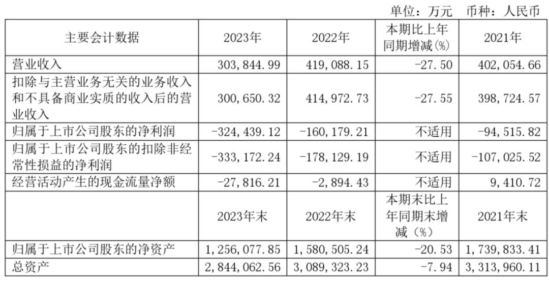 和辉光电的2023年度报告显示,公司营业收入30.38亿元,同比下滑27.5%;归母净利润-32.44亿元,2022年为-16.02亿元;扣非净利润-33.32亿元,2022年为-17.81亿元。