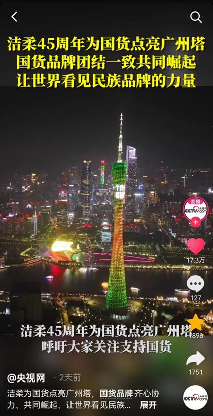 洁柔联动45+国货亮相广州塔 直播天际线上的国货力量(央视点赞) by 时趣