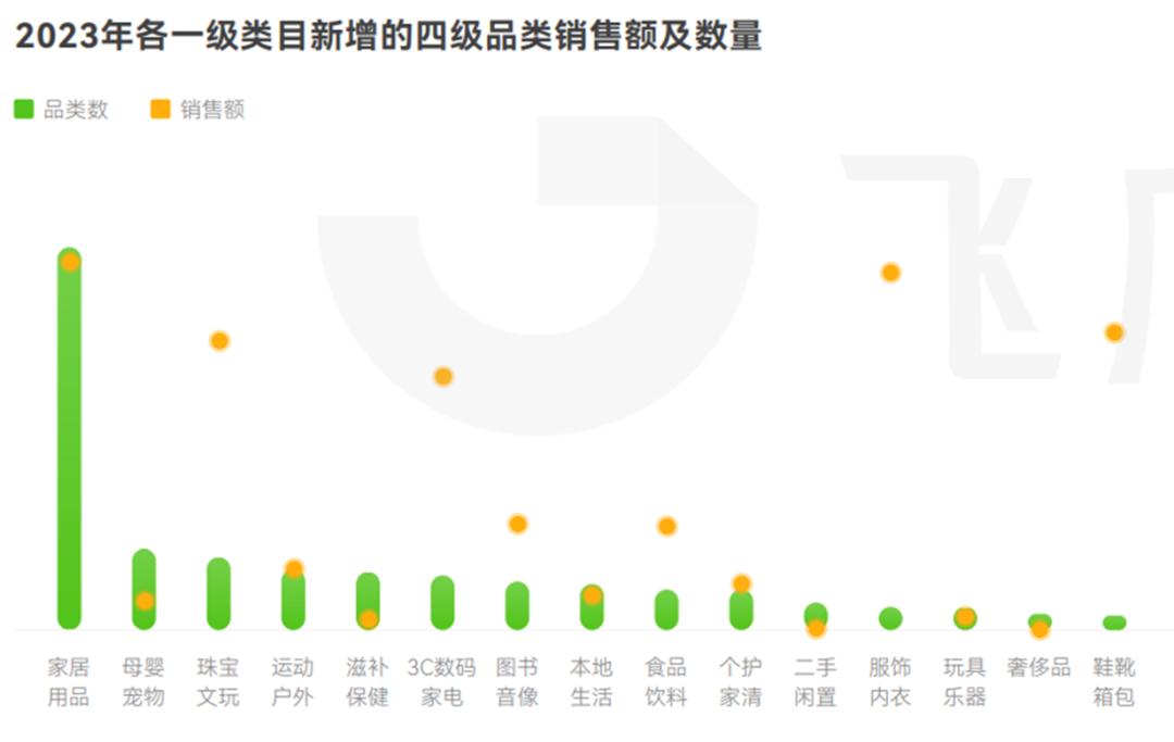 了解直播电商平台一级品类下的子类目情况,新增子级品类越多,往往孕育着新需求信号,有助于品牌通过垂类建立竞争优势。
