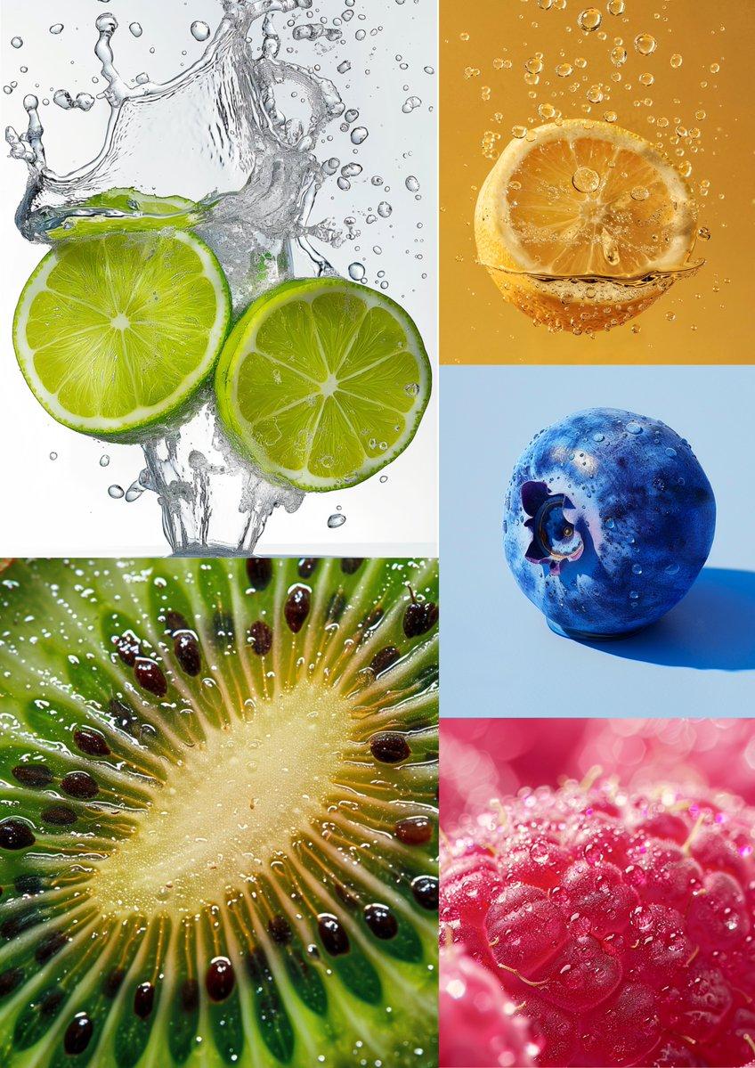 总的来说,这个提示希望生成一张富有质感和层次感的柑橘水果静物照,体现新鲜、生命力和多样性,背景简洁突出主体,通过细节营造出一种生机盎然的自然氛围。Midjourney 完成得不错。