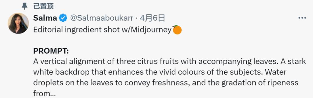 第一个案例,生成编辑风格的食材(柑橘类水果)特写。输入提示:
