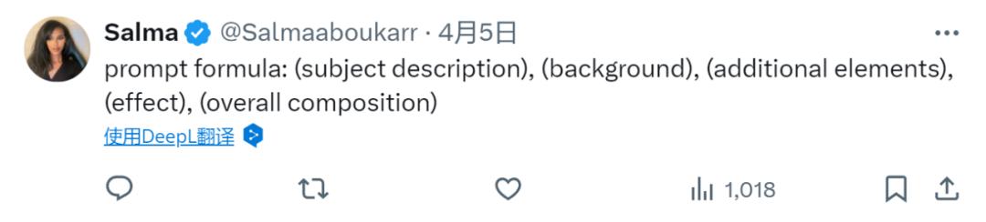 这位作者总结了一个非常实用的公式,按照这个公式逐步描述就能清晰地传达想要生成图像的各个方面要求,让 AI 工具更好地理解并生成你期望的结果。