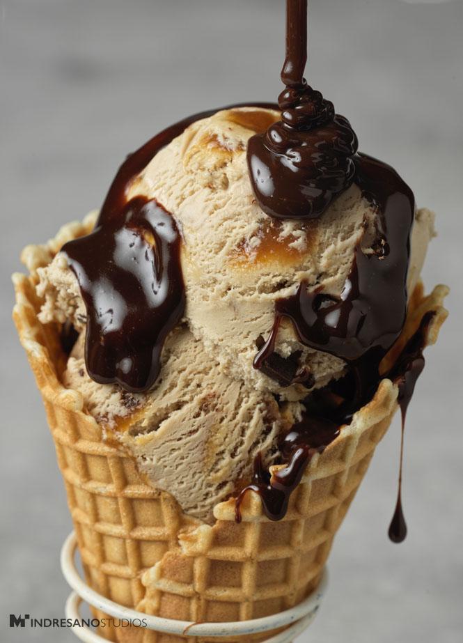 这个提示语描绘了一个细腻丰盈、对比鲜明的焦糖静物照。