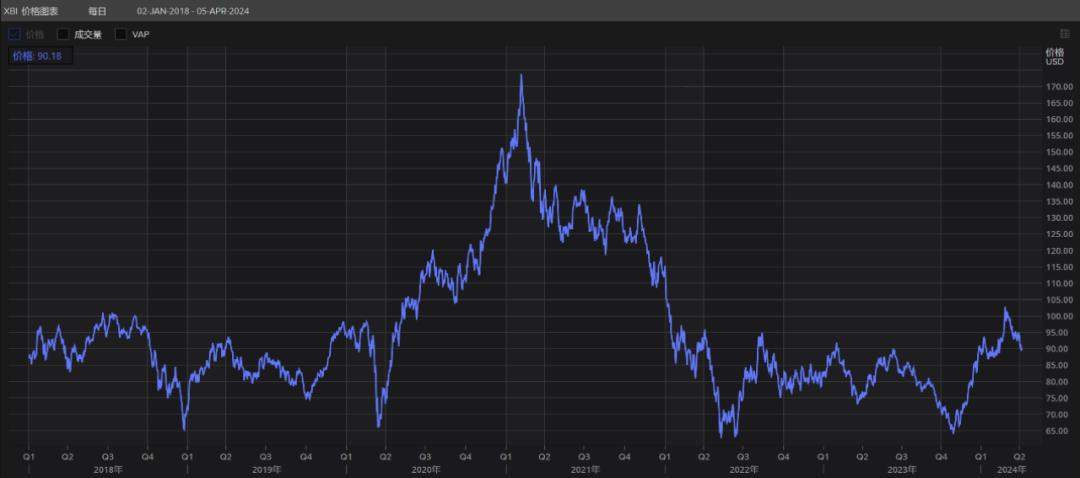 反映二级市场情况的美国纳斯达克生物技术指数(XBI):随着疫情影响逐渐退去而跌入低谷,但24年初从最低谷反弹。数据来源:Thomson Reuters Eikon