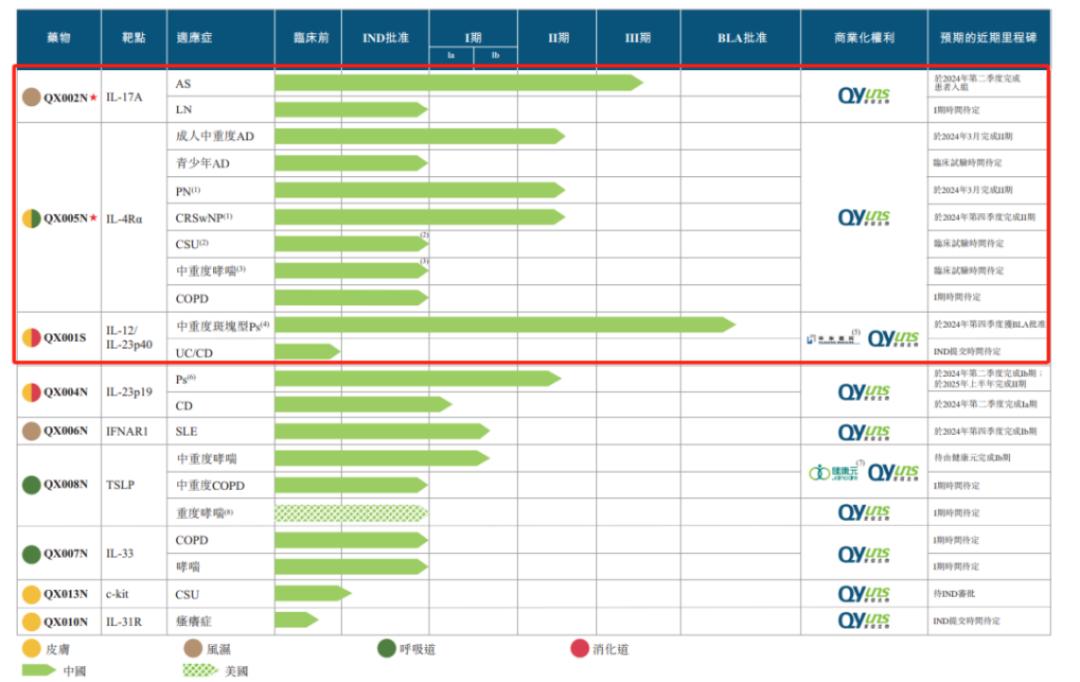 荃信生物在研管线一览;图片来源:荃信生物招股书