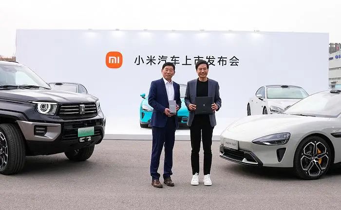 就在3月28日电小米SU7上市发布会前夕,魏建军与雷军相互赠送各自公司的代表车型。魏建军将一台刚上市不久的坦克700 Hi4-T开到发布会现场赠予雷军,雷军也将一台小米SU7赠予魏建军。