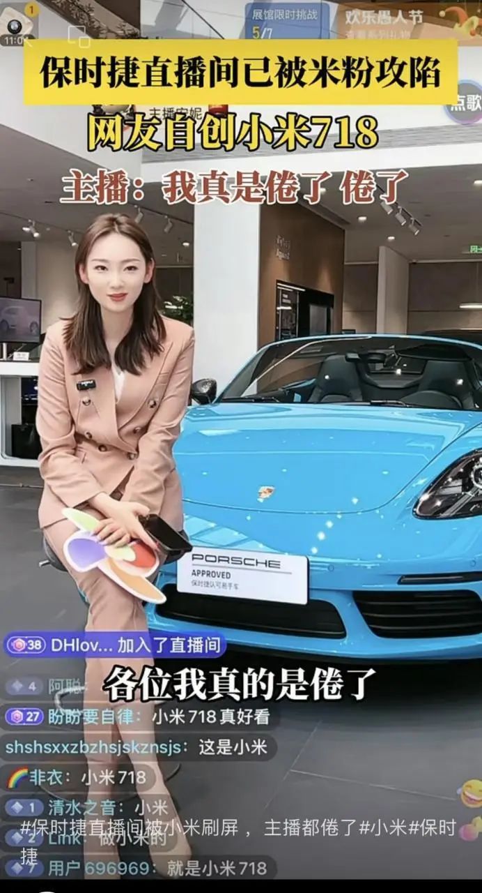 由于二者的设计太过接近,在小米SU7上市后,有不少网友直接冲向保时捷的直播间里疯狂刷“小米汽车”,把保时捷718称作“小米718”。这导致直播间的主播甚至在直播时表示“我真的倦了”。