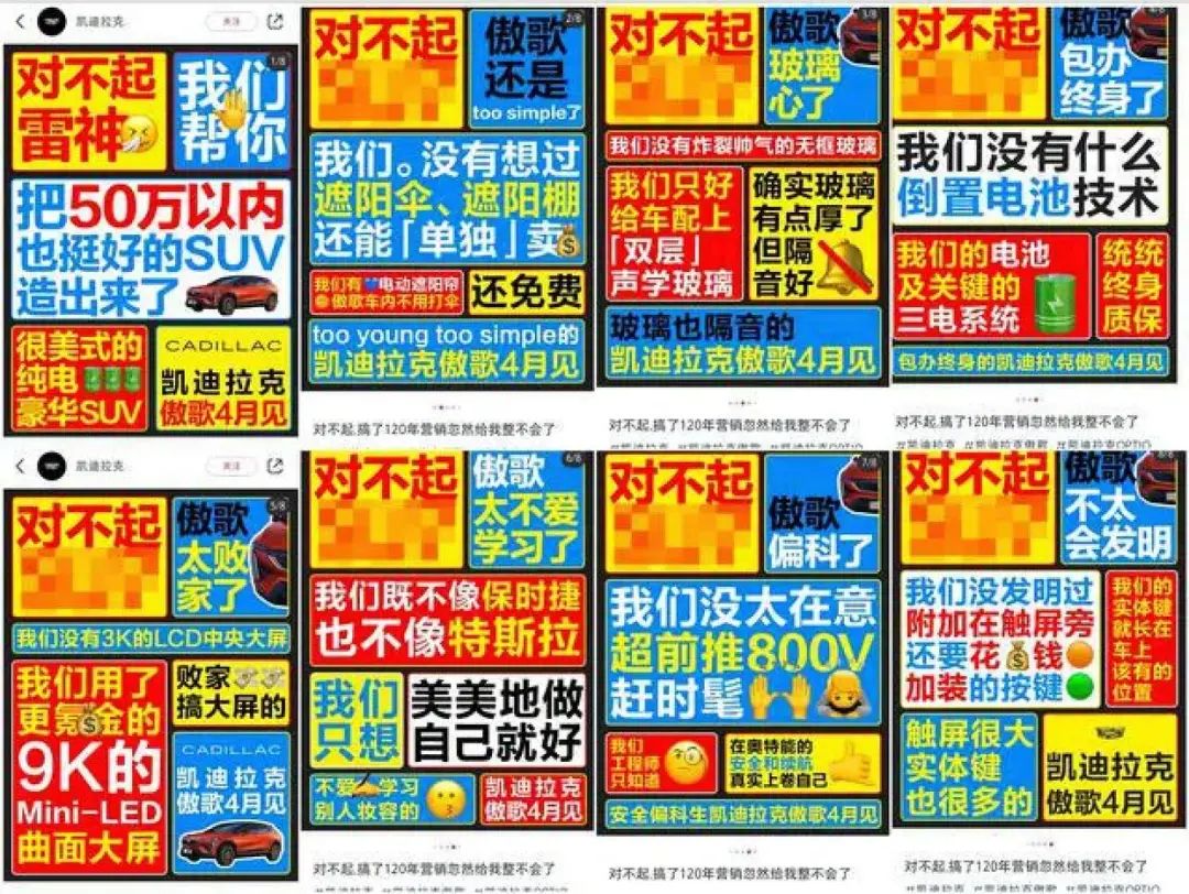3月31日,凯迪拉克官方账号在社交媒体发布了几张海报宣传图片,其中的文案明显针对刚刚上市的小米SU7和雷军: