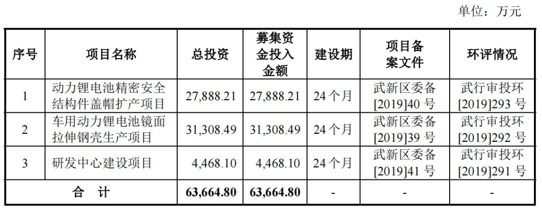 实际上,这并不是中瑞股份第一次冲刺创业板。早在2019年6月,中瑞股份便递交了招股说明书,申报在创业板上市。彼时,公司拟募集资金6.37亿元,主要用于动力锂电池精密安全结构件盖帽扩产、车用动力锂电池镜面拉伸钢壳生产以及研发中心建设项目。