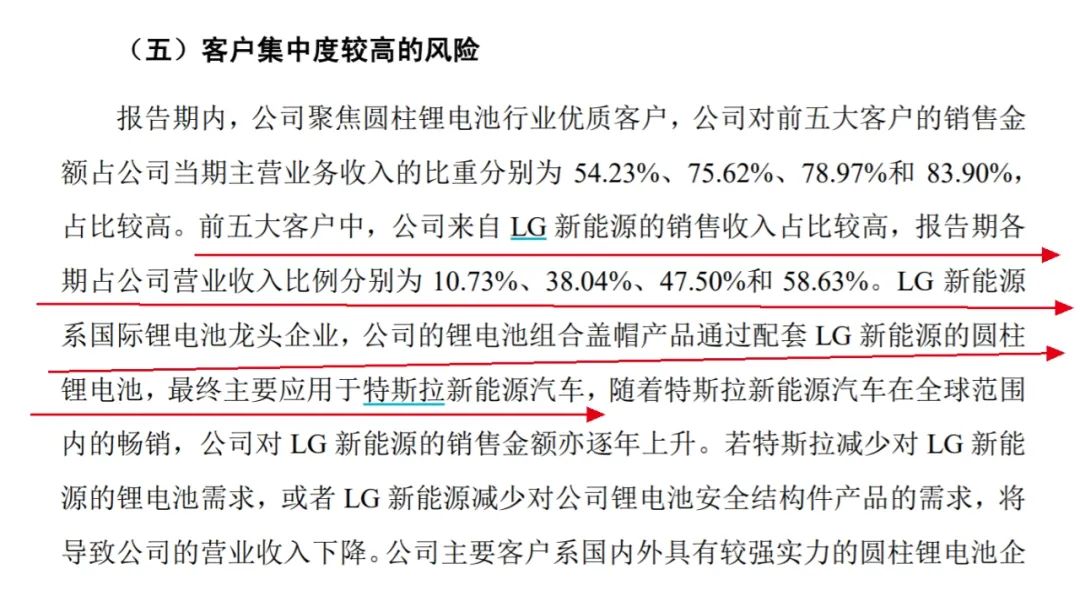 尽管在招股书中,中瑞股份反复提及产品应用于特斯拉新能源汽车,但双方其实并非直接合作。实际上,公司的锂电池组合盖帽产品是通过配套LG新能源的圆柱锂电池,最终主要应用于特斯拉新能源汽车。