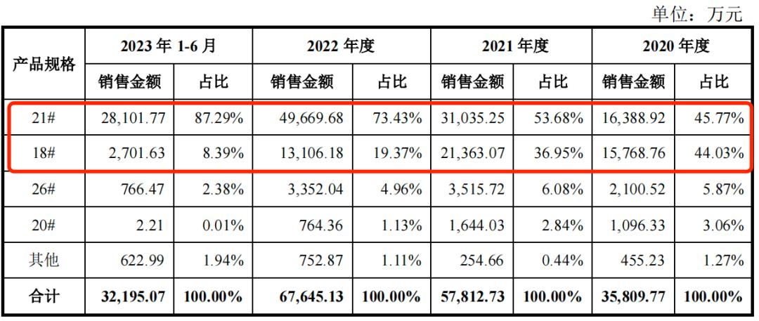 随着LG新能源21700锂电池产销量的提高,配套的21#组合盖帽的销售金额逐年增长。报告期内,该型号产品的销售金额占动力型组合盖帽的比例分别为45.77%、53.68%、73.43%和87.29%。