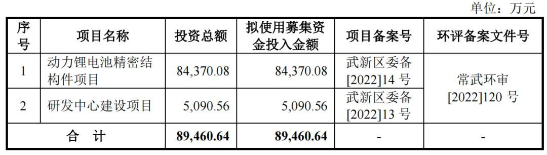 中瑞股份最新版招股说明书显示,公司此次IPO募资金额增长至8.95亿元,主要用于动力锂电池精密结构件项目、研发中心建设项目。