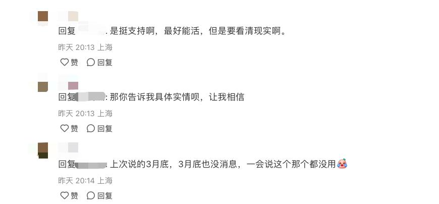 消息真真假假,部分网友认为这次又是烟雾弹,直言对高合复工已经不抱希望,称“之前说3月底,3月底也没消息”,每次都虚晃一枪说有好消息,并认为这种(情况) 没落地之前变数不要太多。