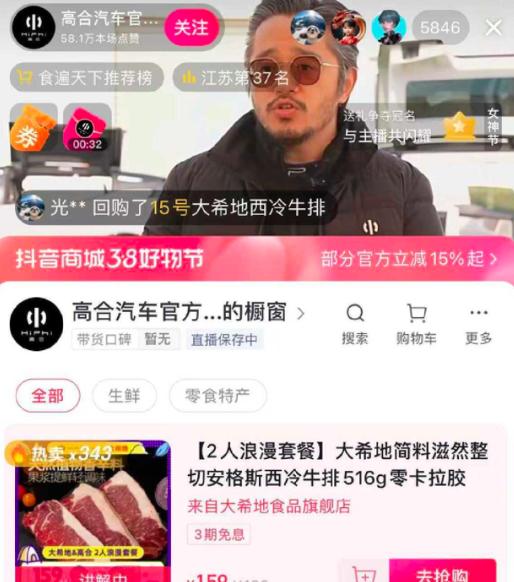 在这一系列抓马事件之后,高合的走向越来越扑朔迷离,而为了自救,高合走向了另一个大家完全没想过的方向—— 直播带货。