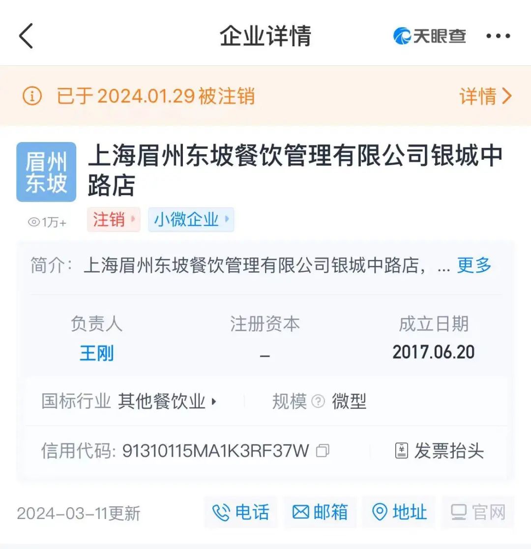 但根据天眼查显示,这家店已于2024年1月29日被注销。