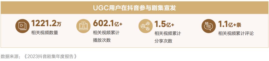 抖音刚刚发布的《抖音娱乐音乐白皮书》透露,2023年UGC用户自发创作的剧集相关视频数量达1221.2万,相关视频播放量达602.1亿+,累计评论1.1亿+条。这些自来水用户专业、细致的切入视角,创新解读、延展好作品的独到魅力,以高品质内容为观众种草,助力爆款剧集诞生。