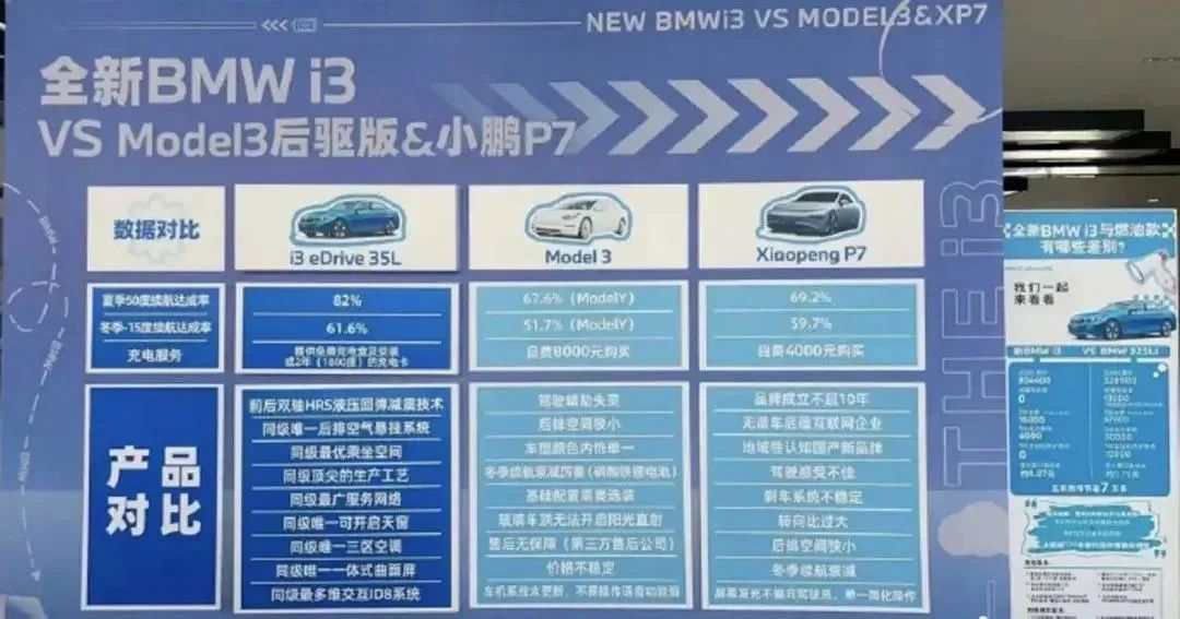 卖个BMW i3,却把和特斯拉Model 3、小鹏P7的对比做成海报,极尽拉踩之能事。